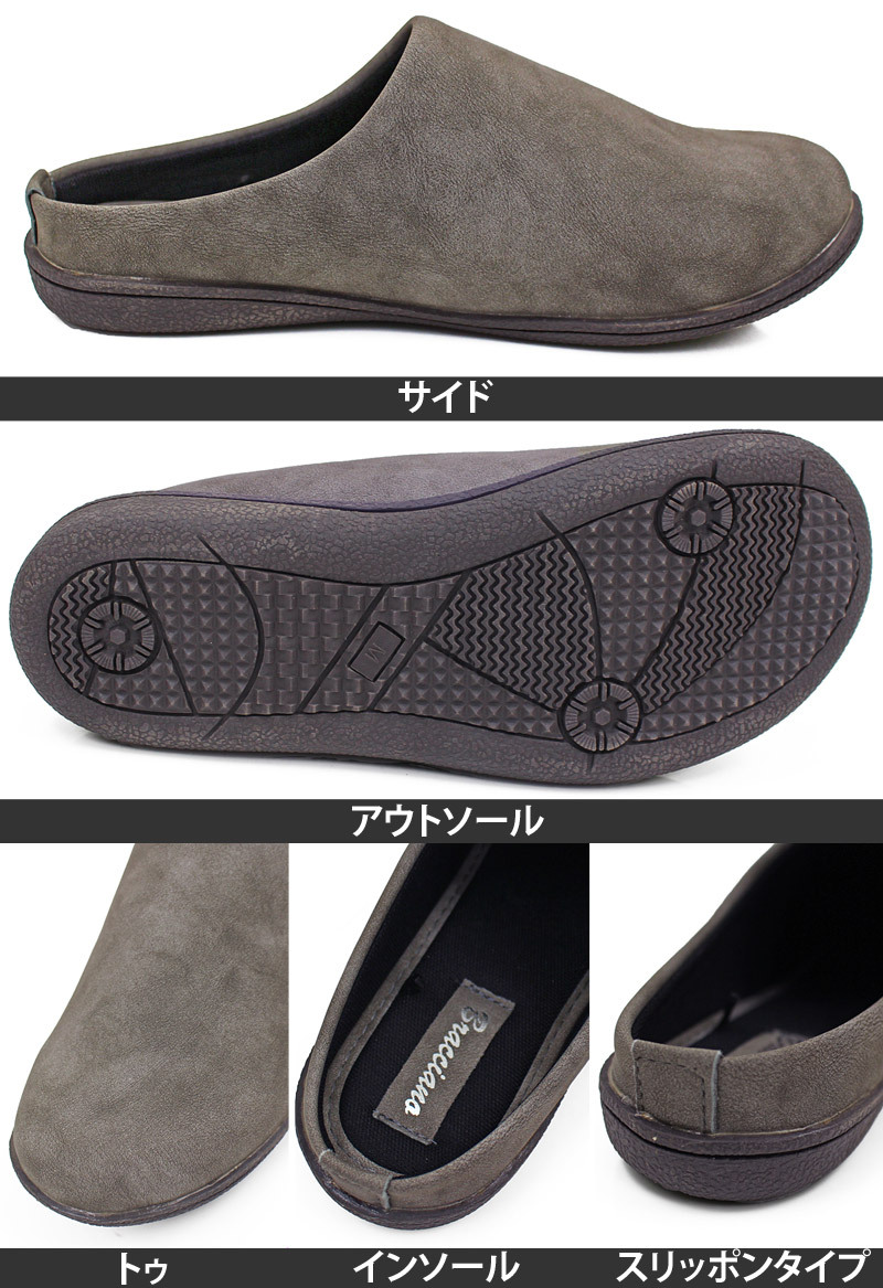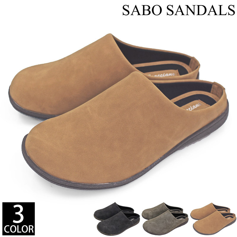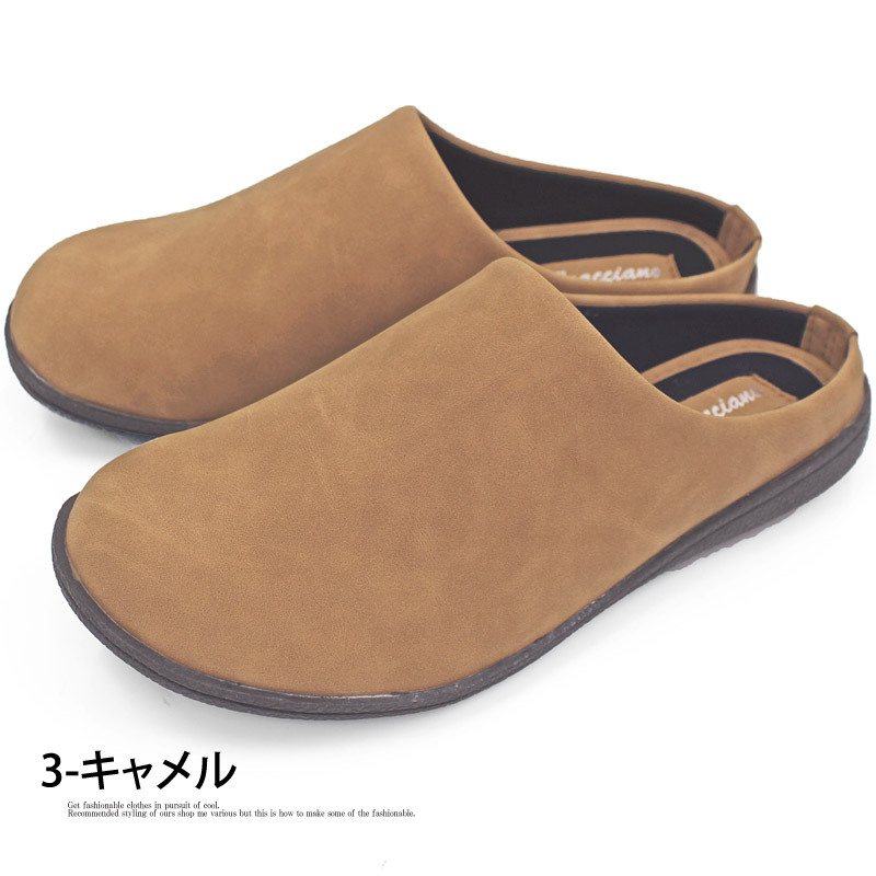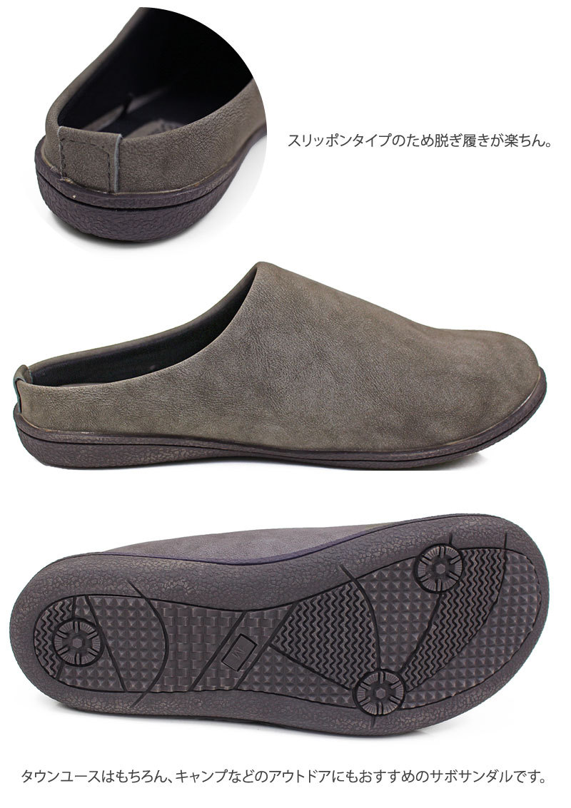 色ムラ感のあるヌバックライクの素材を使用したオールシーズン着用可能なサボサンダル。