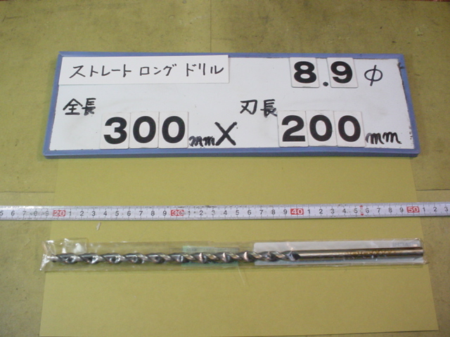 8.9mmの ロングのストレートドリル強力型 日立ツール製 新古品です。 全長300mm 刃長200mmでストレートシャンクです。某社資材部に長年眠っていた品物です。長期保管による外箱や外袋のキズや破損などあります。写真現状有り姿渡しでご入札下さい。