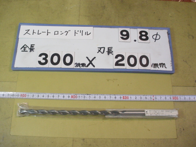 9.8mmの ロングのストレートドリル強力型 日立ツール製 新古品です。 全長300mm 刃長200mmでストレートシャンクです。某社資材部に長年眠っていた品物です。長期保管による外箱や外袋のキズや破損などあります。写真現状有り姿渡しでご入札下さい。