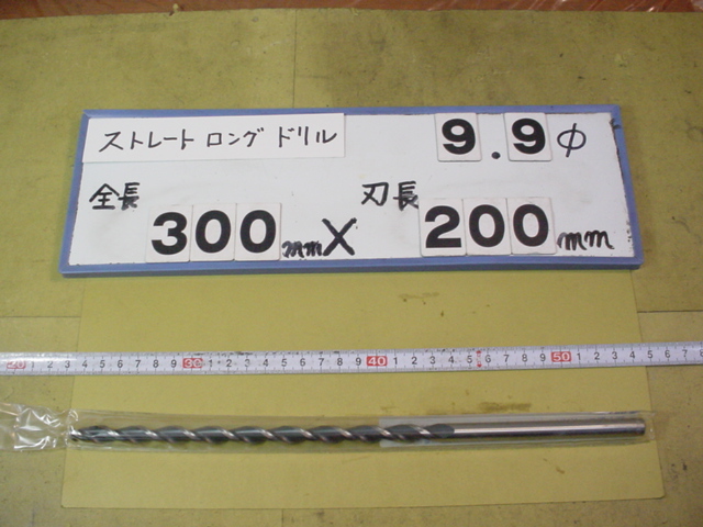 9.9mmの ロングのストレートドリル強力型 日立ツール製 新古品です。 全長300mm 刃長200mmでストレートシャンクです。某社資材部に長年眠っていた品物です。長期保管による外箱や外袋のキズや破損などあります。写真現状有り姿渡しでご入札下さい。