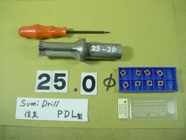 住友イゲタロイ製の フルカットドリル 直径25.0φの中古品で シャンクはサイドロック付きの25φです。型式は PDL250D2S25です。使用できるチップの型式は WDXT073506です。このタイプの新古品チップを1箱おまけしておきます。 品物は写真現状有り姿渡しでご入札下さい。本体もチップも写真に映っているもの有り姿渡しですのでノークレームです。 フル762