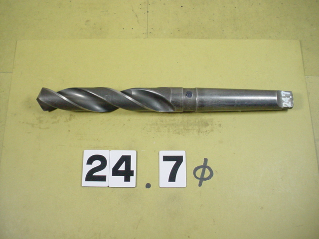 テーパードリルの中古品 24.7φです。シャンクはMT3です。刃長は 130mmです。写真の現状有り姿渡しでご入札下さい。