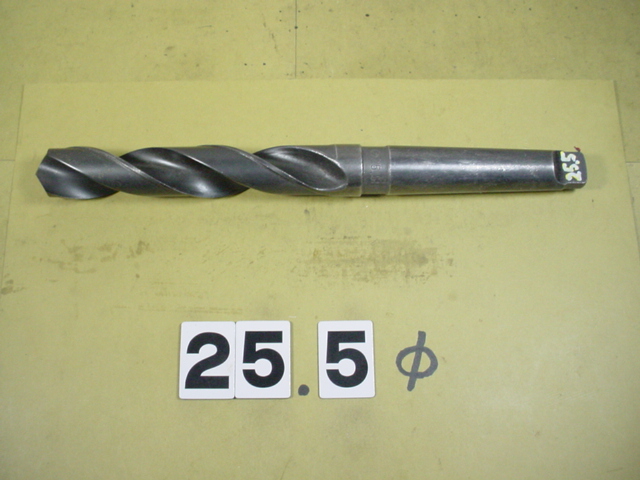 テーパードリルの中古品 25.5φです。シャンクはMT3です。刃長は 140mmです。写真の現状有り姿渡しでご入札下さい。