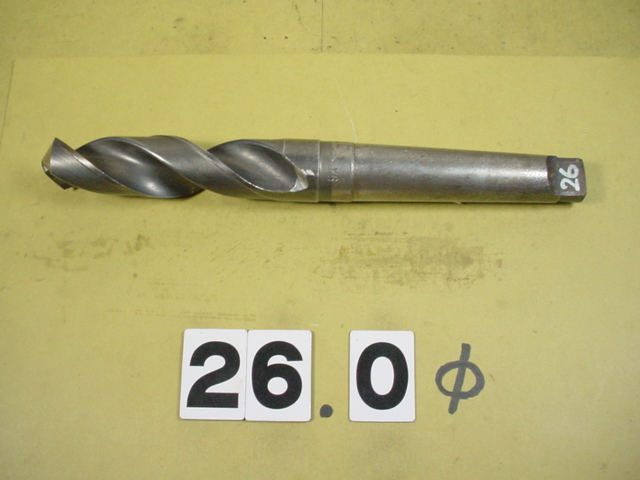 テーパードリルの中古品 26.0φです。シャンクはMT3です。刃長は 96mmです。写真の現状有り姿渡しでご入札下さい。