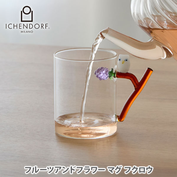 ハンドメイドならではのユニークなデザインのマグカップです。職人の手で作られるフクロウの可愛らしい表情が魅力的で、ギフトでも喜ばれるアイテムです。内側のフルーツのデザインもとても細かく表現されており、ガラスの美しさが際立つ逸品です。