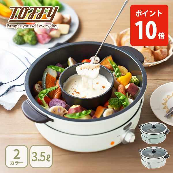 簡単・お手軽にお鍋が楽しめる卓上の電気グリル鍋です。家族での食卓やホームパーティまで3.5リットルのたっぷりサイズでマルチに活躍。「煮る」「炊く」「焼く」「蒸す」と便利に使える鍋に加えて、チーズフォンデュや火鍋などの2色鍋が楽しめる「内鍋」と、人気の「たこ焼きプレート」が付属します。