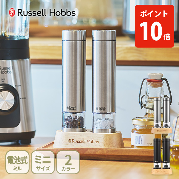 2026年モデル ラッセルホブス 電動ミル ソルト&ペッパー ミニ 7935JP・7935JP-BK Russell Hobbs ハンディサイズ コンパクト 岩塩 セラミック刃
