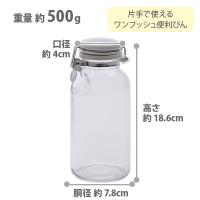 ■素材:本体:ソーダライムガラス、フタ:ポリプロピレン樹脂、フタ止め:ナイロン、フック:ポリカーボネイト樹脂、パッキン:シリコンゴム、金具:18-1ステンレス