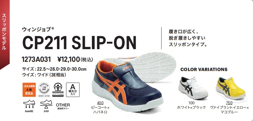 アシックス(asics) 安全靴 CP211 SLIP-ON【1273A031】