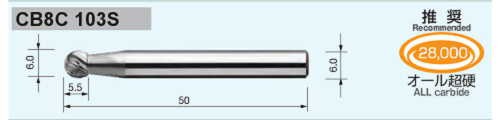 MRA 超硬バー CB8C103S  6mm軸 スパイラルカット 刃径Φ6.0mm×刃長5.5mm×全長50mm×シャンク径Φ6.0mm ムラキ