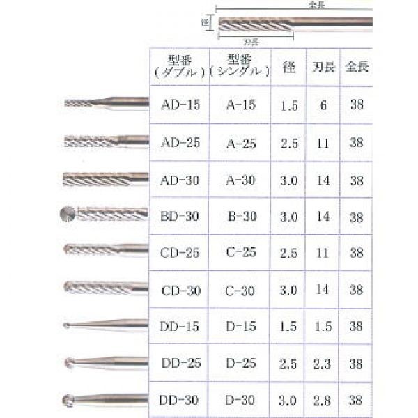 DD-25 超硬ソリッドミニバー Dシリーズ 3mm軸 ダブル目 TAG