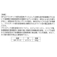 ・GIPはプラスチック成型金型用グリスとして必要な条件高温極圧下において長期間の潤滑持続性を発揮するグリスの軟化・液果によるたれ落ちがない・成型品を汚さないグリスの固化、焼き付けがないこれらすべてを考慮し、プラスチック成型金型専用に開発されたホワイト色の極圧耐熱グリスです。