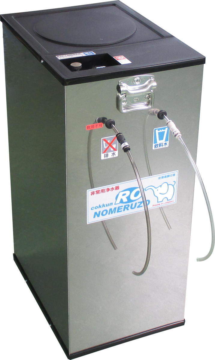逆浸透膜と中空糸膜使用でほとんどの水が安全に飲めて飲料水を確保!手動蓄圧式で連続浄水が可能です。