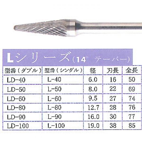 LD-60 標準タイプ超硬バー(ダブル目) Lシリーズ 6mm軸 TAG