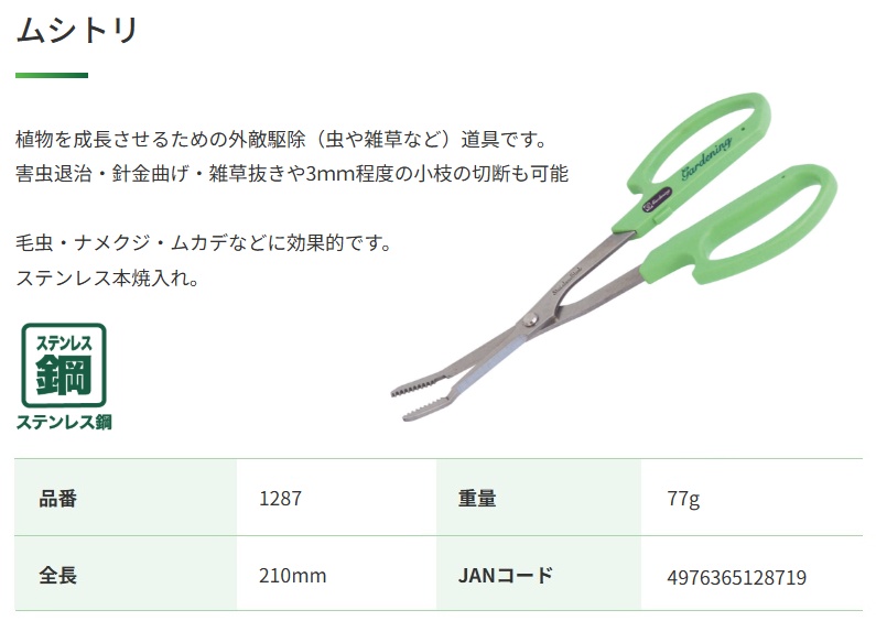 ・害虫退治・針金曲げ・雑草抜きや3mm程度の小枝の切断も可能