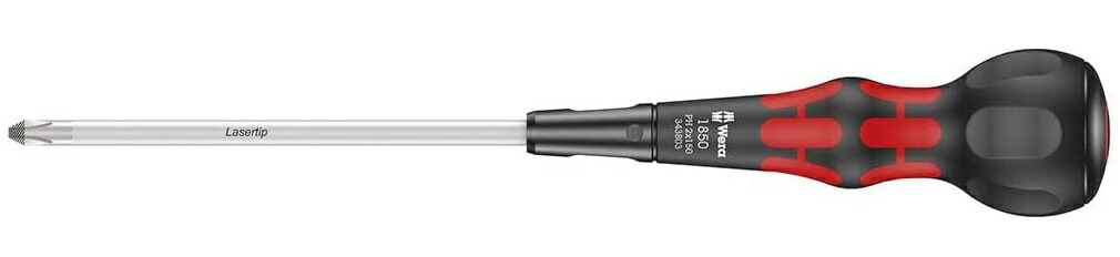 Wera 1850 ボールグリップ レーザーチップドライバー 05343803001 PH2x150mm レッド プラスドライバー ヴェラ 222763 送料無料 小型便 ♪