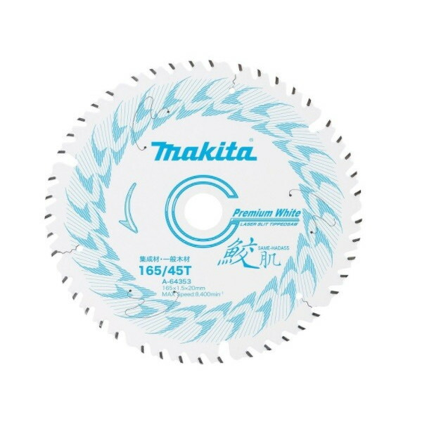 マキタ 鮫肌 プレミアムホワイトチップソー A-64353 外径165mm 刃数45 集成材・一般木材用 makita 送料無料 ネコポス 在庫