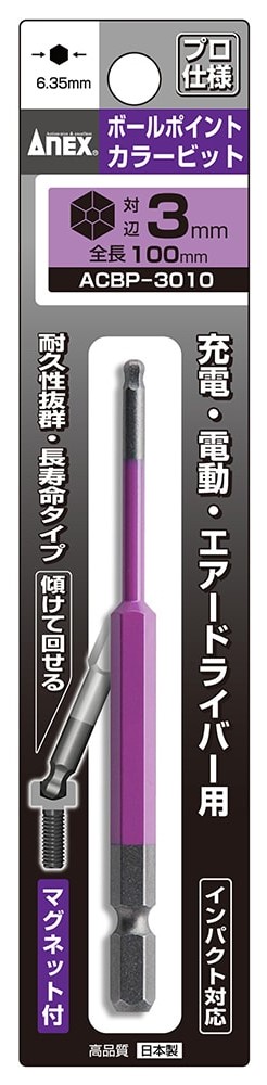 アネックス ACBP-3010 ボールポイントカラービット 1本組 H3×100 ANEX 兼古製作所 402310 ネコポス可 '