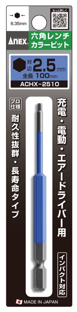アネックス ACHX-2510 六角レンチカラービット 1本組 H2.5x100 ANEX 兼古製作所 403829 ネコポス可 '
