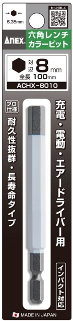 アネックス ACHX-8010 六角レンチカラービット 1本組 H8x100 ANEX 兼古製作所 403874 ネコポス可 '