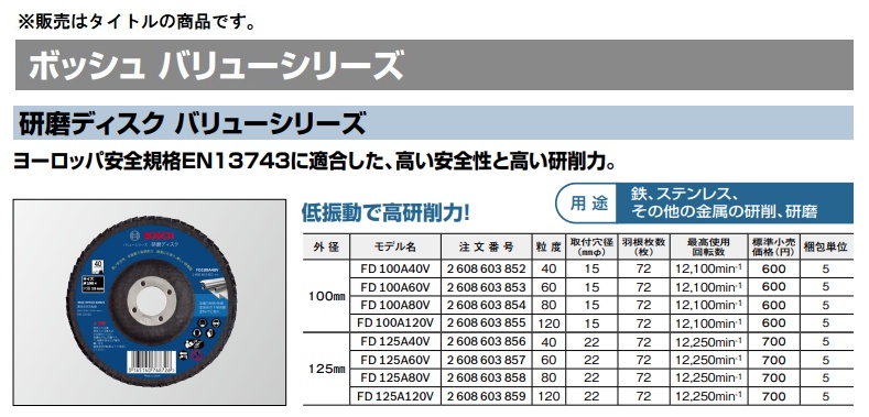 (ボッシュ) FD100A80V 研磨ディスク 5枚セット 粒度80 外径100mm 2608603854 バリューシリーズ BOSCH