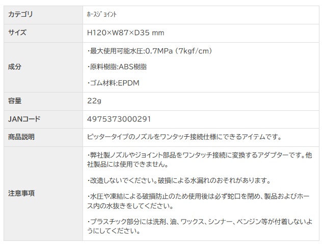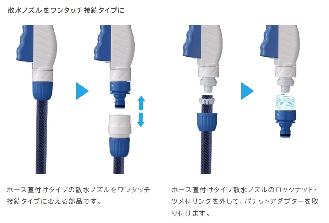 ピッタータイプのノズルをワンタッチ接続仕様にできるアイテムです。