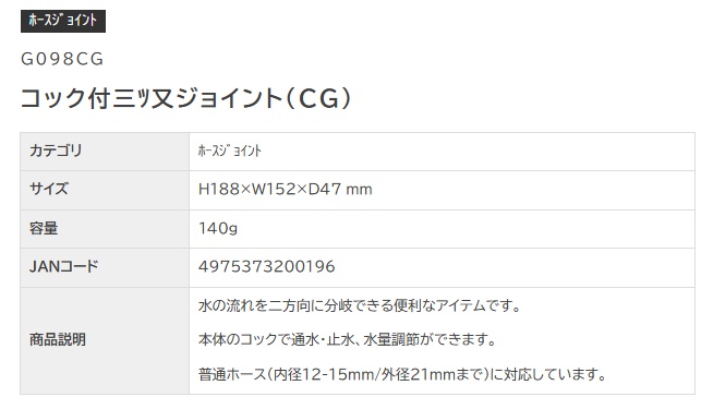 タカギ G098CG コック付三ツ又ジョイント(CG) TAKAGI 200196 小型便 '