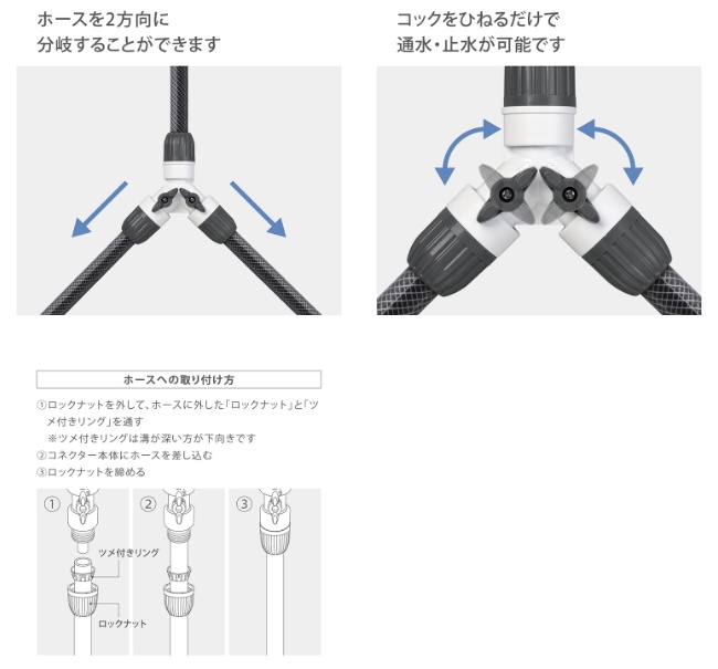 ・水の流れを二方向に分岐できる便利なアイテムです。