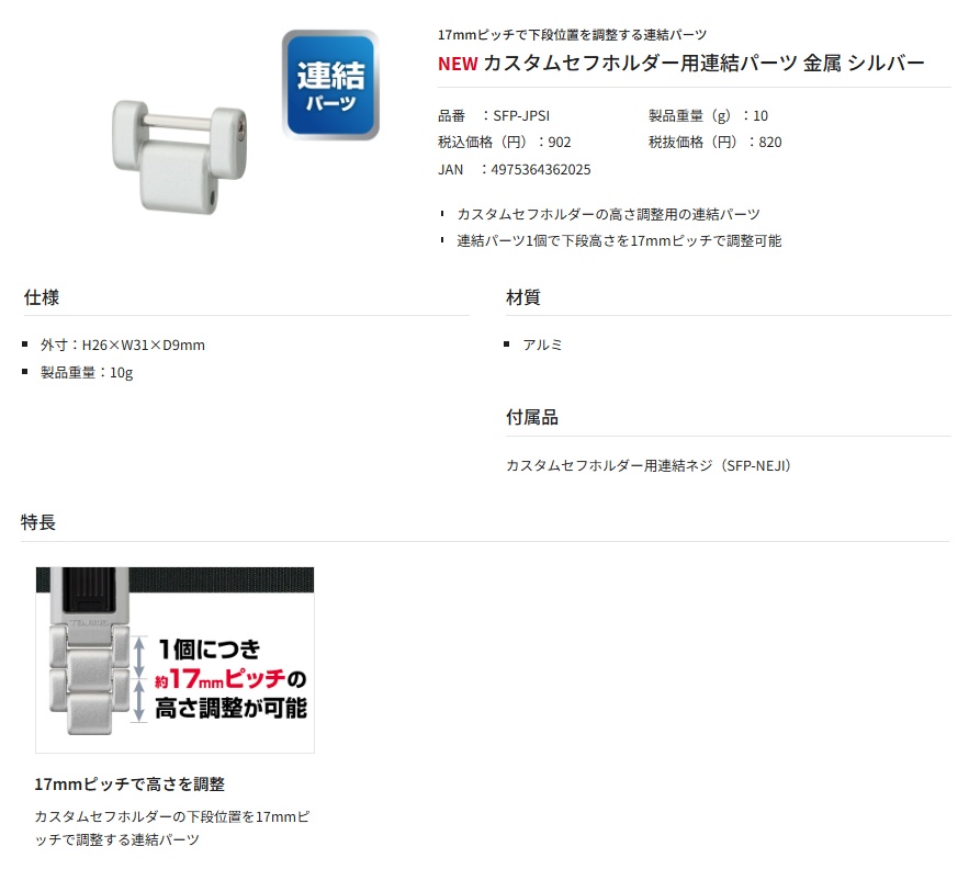 17mmピッチで下段位置を調整する連結パーツ