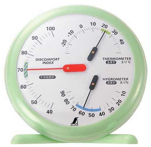 ・精度 <温度>-20〜40℃:±2℃、それ以外±4℃ <湿度>35〜75%:±5%、それ以外±10% <不快指数>60〜80:±2目盛、それ以外±4目盛