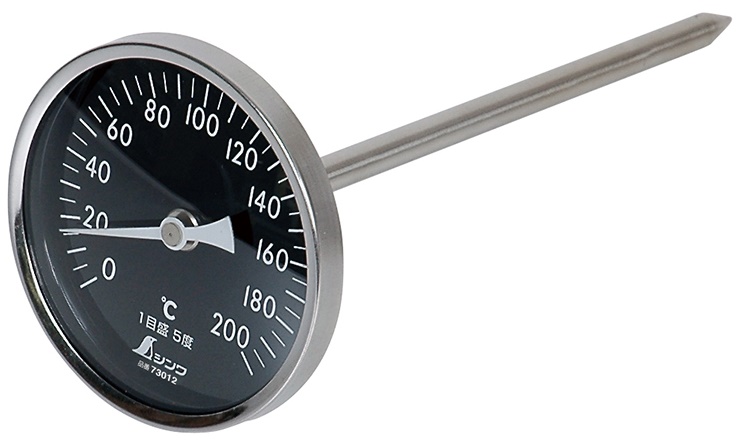 シンワ 温度計 V-4 丸T字型 0〜200℃ φ8x20cm 白目盛 73012 。