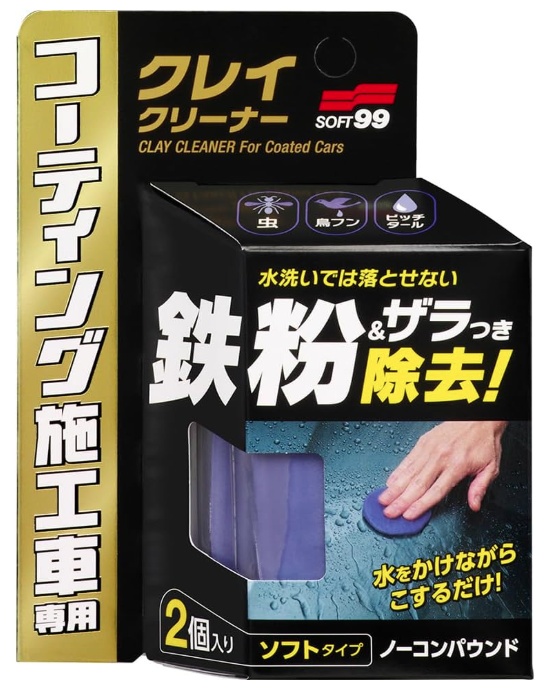 水をかけながらこするだけで水洗いだけでは落とせない、ボディの鉄粉やザラつきを除去するコーティング施工車専用ねんどクリーナー。