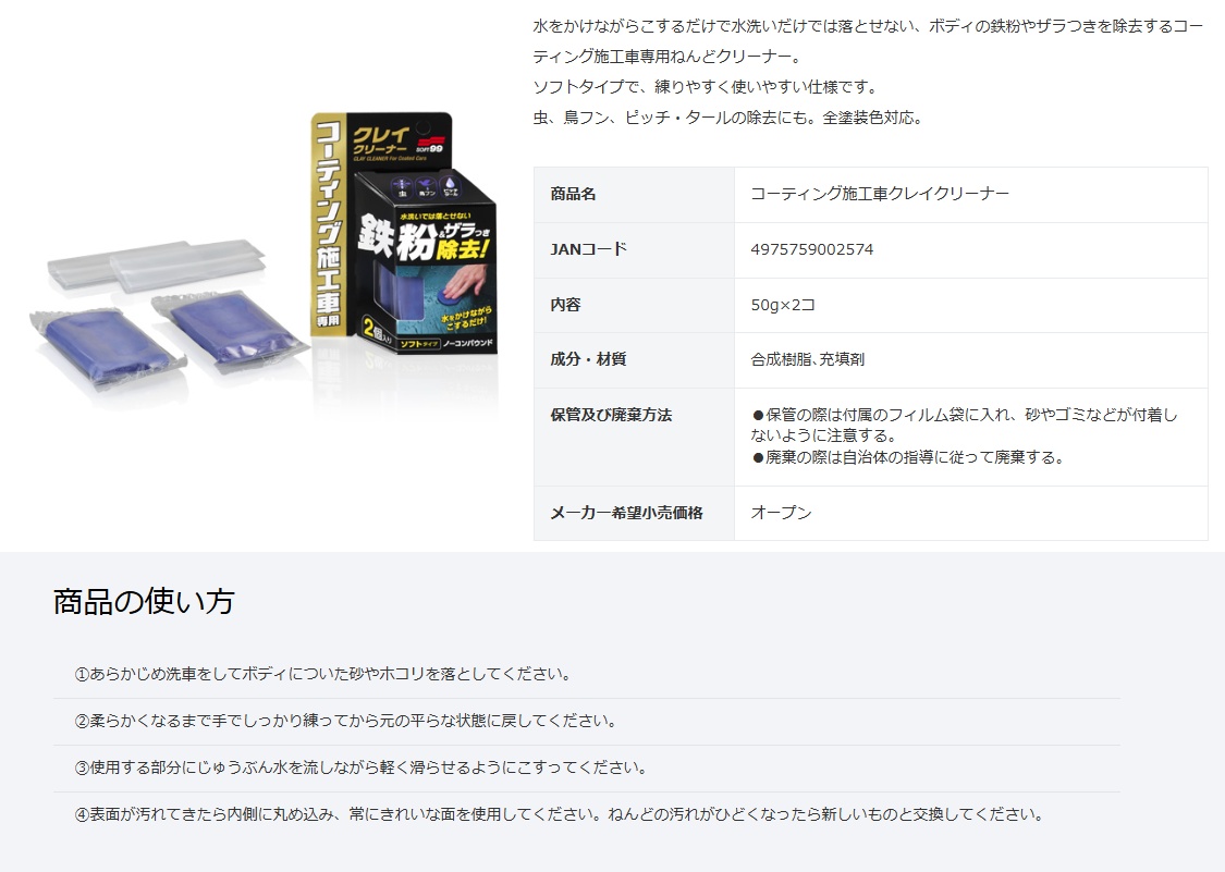 ソフト99 コーティング施工車クレイクリーナー 商品コード00257 コーティング施工車専用ねんどクリーナー SOFT99 ネコポス 在庫
