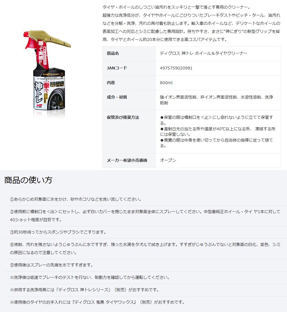 ディグロス 神トレ ホイール&タイヤクリーナー 800ml