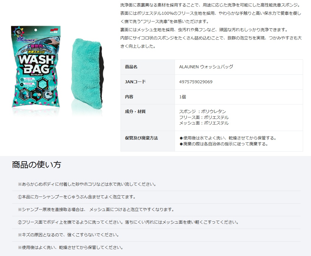 ソフト99 ALAUNEN ウォッシュバッグ 商品コード02906 SOFT99 小型便 在庫