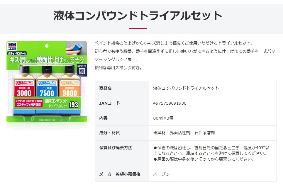 ソフト99 液体コンパウンドトライアルセット 商品コード09193 専用スポンジ付 SOFT99 ネコポス 在庫