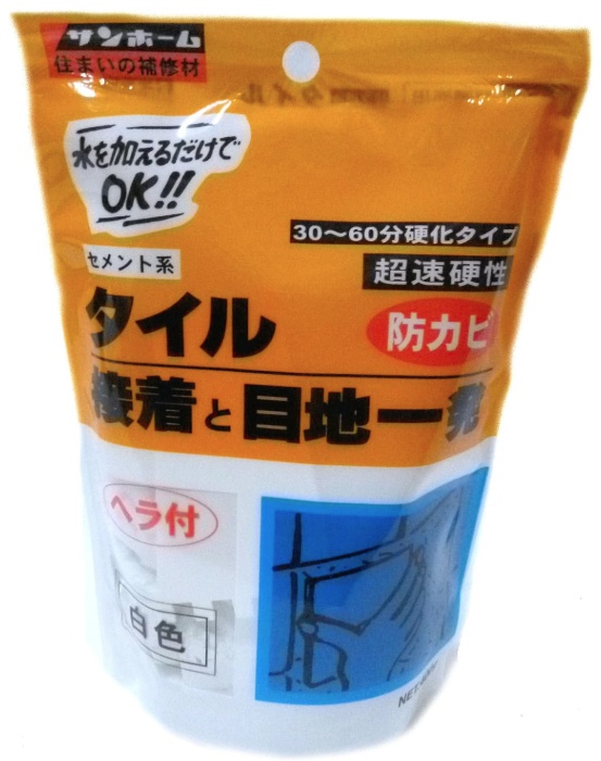 サンホーム工業 タイル接着と目地一発 白色 400g ヘラ付 超速硬性 セメント系 防カビ 住まいの補修材 755045 小型便 '
