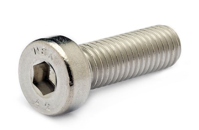 低頭六角穴付きボルトは、高強度の締付けが可能で、六角穴をスパナで締めつけるねじです。円筒形をした頭部高さが低く、一般には、ローヘッドキャップスクリューと呼ばれています。工作機械などで、高強度の締付け必要個所、特に場所の狭い所、沈め穴などに使用されます。また近年では、デザイン面からの使用も増えています。 ★ねじの呼び(サイズ)は首下径x首下長さmmです。(長さ=材料から外に出る頭部分は寸法に入れず)