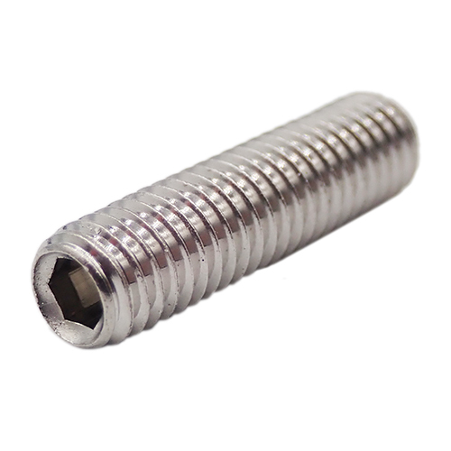 ホーローセット(イモネジ)の最大の特徴はなんと言ってもねじ頭部がねじ部と同じ大きさであるという点です。その名前の通り頭部に六角形の穴の付いたネジでJISの正式名称は「六角穴付き止めねじ」といいます。正式名称が長いのでホーローセットやイモネジと呼ばれることのほうが多くなっています。
