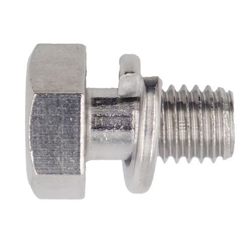 ステンレスの六角トリーマ頭セムス小ねじ P=3です。 六角頭形状のねじに、バネ座+JIS平座金が組込れてはずれない形状です。 六角トリーマボルトとは、ボルト頭をトリーマによって打ち抜いた一般的なボルトの事を言います。ステンレス鋼なので、さびにも強く、耐熱性に優れています。