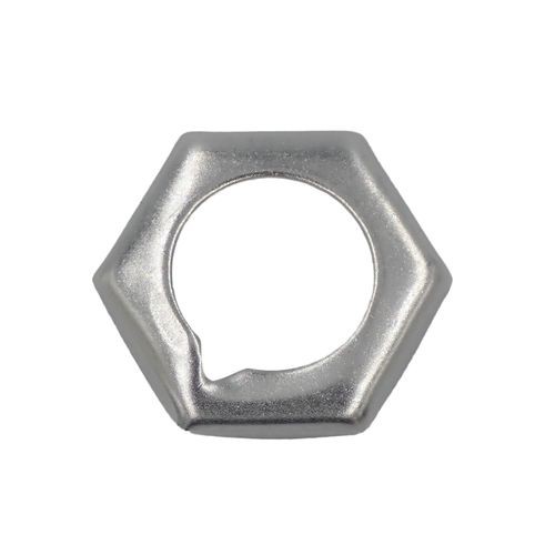 通常ナットと組合わせ、併用するゆるみ止めナットです。通常通りナットをボルトに締付け、その上にイダリングを上向にしてナットの上に止まるまで手で廻し、つぎにレンチで円周の 1/4 〜1/3 締めると、リングの内縁がボルトの谷に喰い込み締め付け完了です。