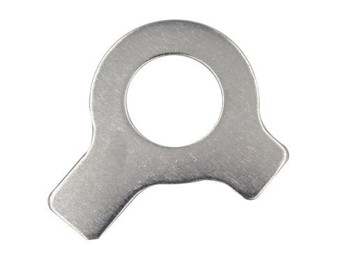 丸平座金の一部突き出た部分を折り曲げてナットに巻きつけてゆるみ止め、回り止め機能として使用します。舌は2枚です。