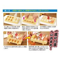みんなで楽しくにぎり寿司づくり!愉快なとびだす寿司ゲタ形のにぎり寿司メーカーです。わいわい楽しくおすしパーティー!ご飯のつかないダブルエンボス加工。食洗機対応。