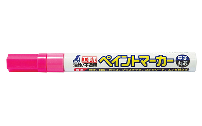 シンワ測定 工事用 ペイントマーカー 中字 丸芯 蛍光ピンク 78419
