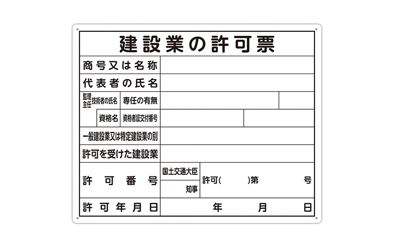 シンワ測定 法令許可票 「建設業の許可票」 40×50cm 横 79077