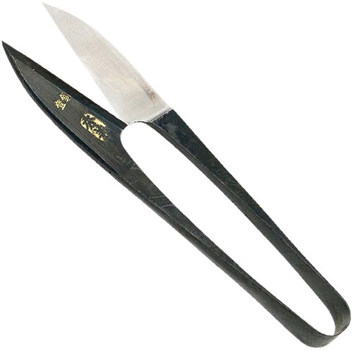 秀兼 鋼付 イブシ 東型 握り鋏 105mm●ニギリ鋏は別名を和ばさみともいいます●この形態の鋏の見た目はよく似ていますが、実は素材・用途はさまざまで、握り心地に至るまで細心の心遣いがこめられています●本職用からご家庭用まで取り揃えています●鋼と軟鉄の複合材を鍛造した材料です●切れ刃部分(実際に切る部分)に鋼を複合しております●硬い鋼と軟鉄を複合することにより、硬さと適度な粘り(クッション効果)を持たせていますので、耐久性と切れ味に優れます