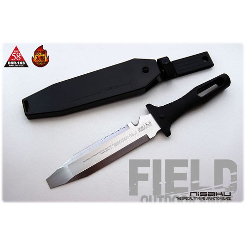 ●チゼル型刀身 岩に張り付いた貝類などの剥ぎ取り。 コマセなどの粉砕に。●総焼入刀身 鉈のようにも使える頑強な3mm厚刀身。●ガットフック ロープや蔓などの切断。布類の裂き切り。●波刃(セレーションブレード) 植物の根や枝木からロープまで軽々と切断できる。