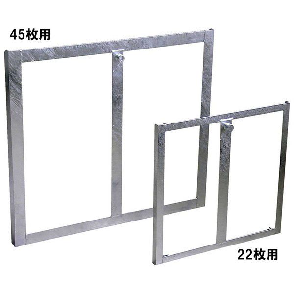 ■サイズ:920×85×845mm■収容枚数(枚):45(3列×15)■セット重量:22.4kg■材質:鉄(ドブメッキ仕上)■セット内容:本体×2