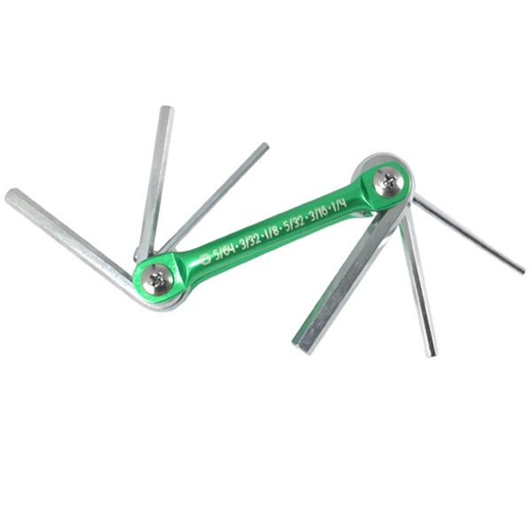 折込式のレンチシリーズで、アルミ合金ボディの軽量でスタイリッシュなハンディツールです。インチサイズの6角棒レンチがセットされています。