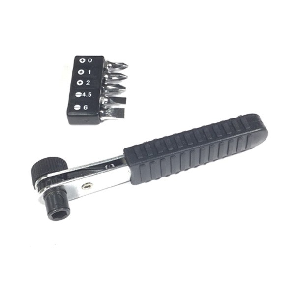 ラチェット機構を搭載本体はラチェット機構を搭載しているので、連続作業が大変楽です。狭い箇所で便利な+0, +1, +2, −4.−5, −6のドライバービット付。仮締め用の着脱式早回しリングを外せば、6.35mm角のソケットも使用できます。※ソケットは付属していません。別売りのソケットをお使いください。